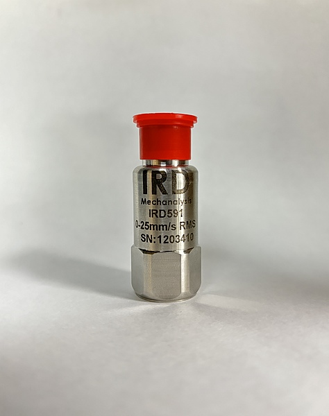 IRD591 (591) - Industrial Vibration Sensor, Loop Powered, 4-20 mA proportional to 0-25 mm/s RMS Vibration, 2 Pin MS Top Exit, 1/4-28" UNF female thread tapped